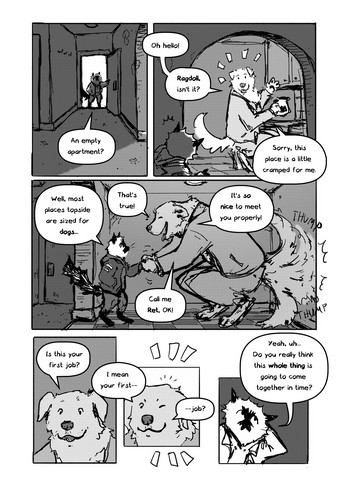 But if you don't want to wait (or just want to support the creator :3), you can buy the PDF! It contains a cover and 35 B&W comic pages in double-spread format.