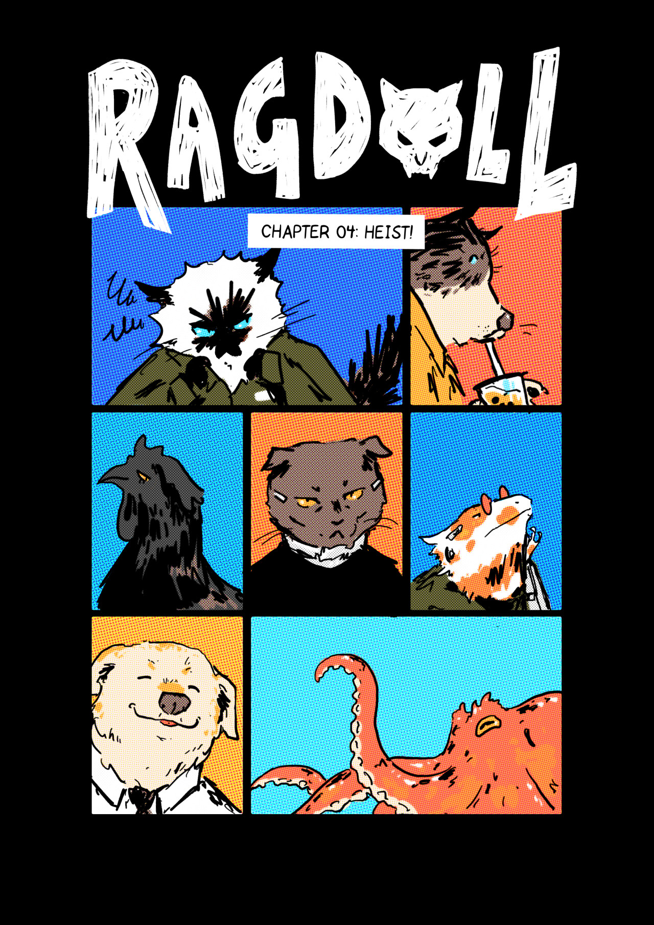 Ragdoll is the story of a troubled young cat joining a zoological heist crew - but in this cyberpunk city, it's survival of the fittest. It is an ongoing webcomic that can be read here for free https://ragdoll.the-comic.org/