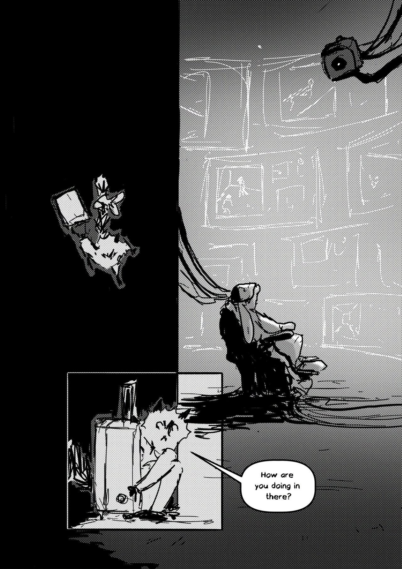 But if you don't want to wait (or just want to support the creator :3), you can buy the PDF! It contains a cover and 25 B&W comic pages in double-spread format.